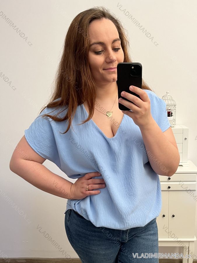 TOVAR (119142) > oblečenie dámske (80538) > Topy, tričká, tuniky a tielka (12865) > Tunika/blúzka krátky rukáv dámska nadrozmer (2XL/3XL/4XL ONE SIZE) TALIANSKA MÓDA IMD231458/DUR 2XL/3XL modrá