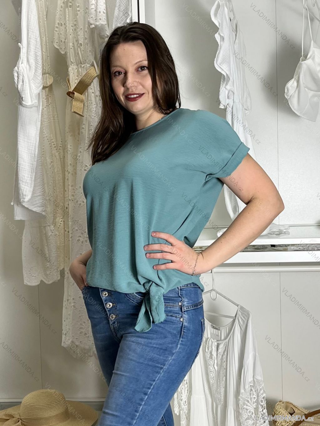 Tunika blúzka krátky rukáv dámska nadrozmer (52/54/56 ONE SIZE) TALIANSKA MODA IM424128/DUR béžová 52/54