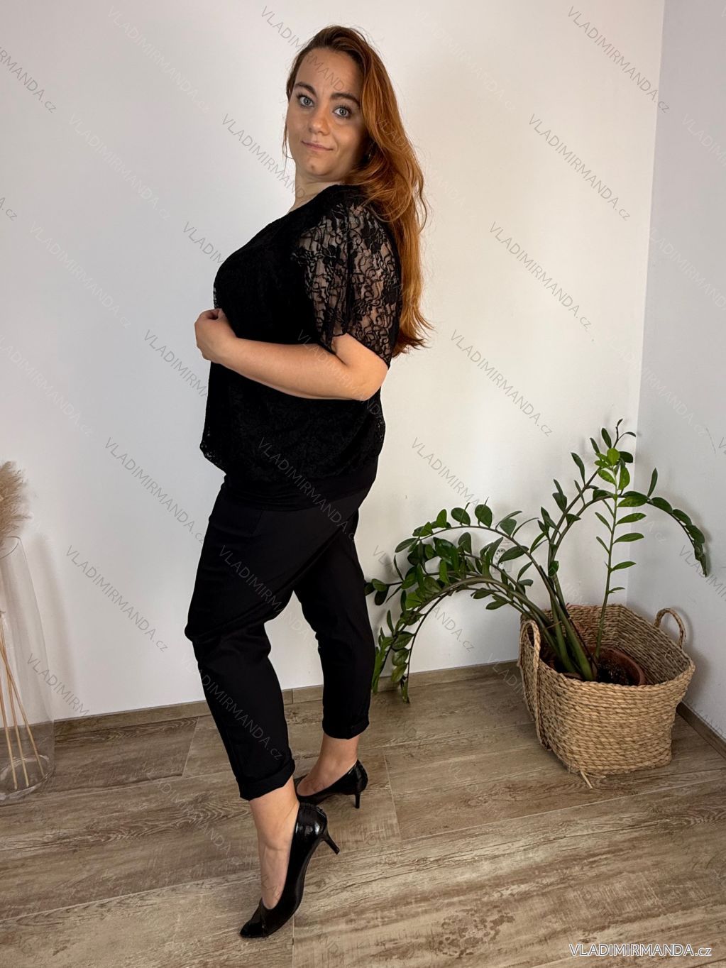 TOVAR (120715) > oblečenie dámske (82155) > Topy, tričká, tuniky a tielka (13146) > tuniky (5382) > Tuniky krátky rukáv (2682) > Tunika elegantní krajková krátký rukáv dámská nadrozměr (46/48/50 ONE SIZE) ITALSKÁ MÓDA IMSM250001/DUR - čierna