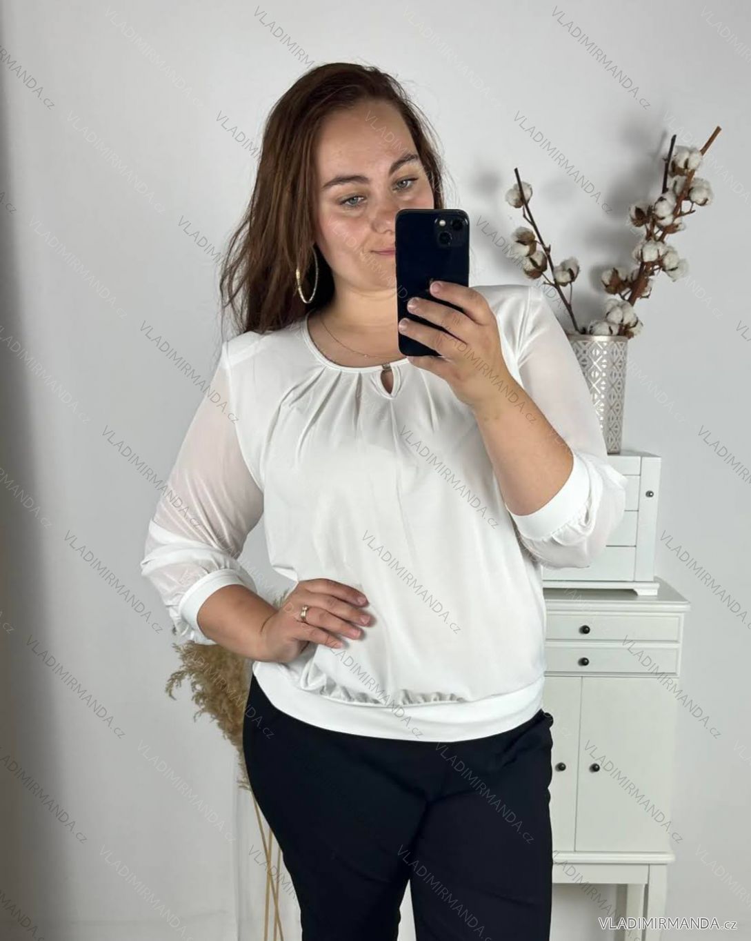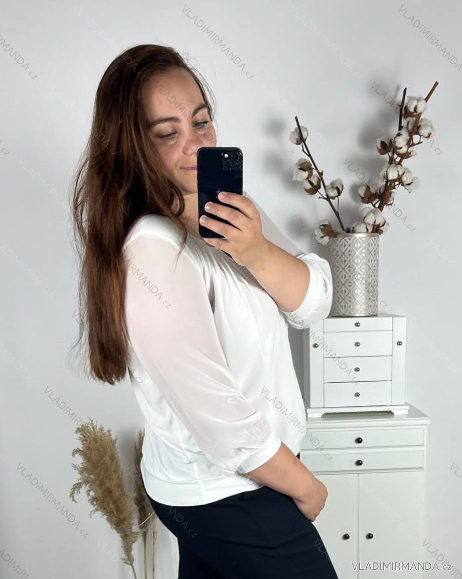 TOVAR (120808) > oblečenie dámske (81890) > Topy, tričká, tuniky a tielka (12979) > Tunika halecka dlouhý rukáv nadrozmerné (L-4XL) POĽSKÁ MÓDA PMF24HELA/DU - biela - 5XL