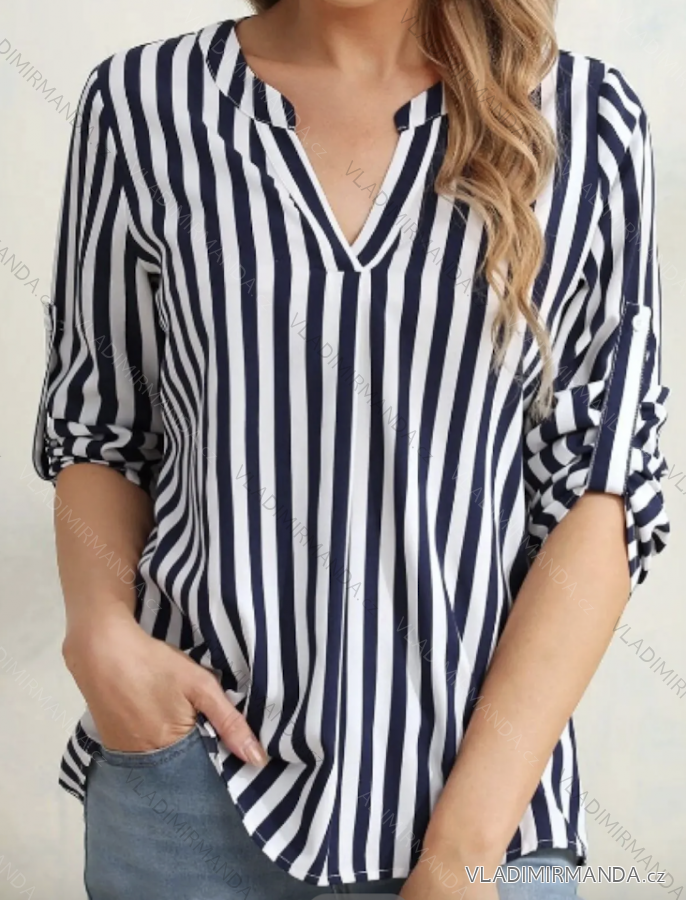 Tunika košeľová dlhý rukáv dámska prúžok (S/M ONE SIZE) TALIANSKA MÓDA IMPCF2336287