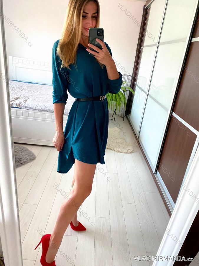 TOVAR (120884) > oblečenie dámske (81951) > šaty (30772) > Tunika košilová prodloužená dámské 3/4 rukáv s páskem (M/L/XL ONE SIZE) ITALSKÁ MÓDA IMM23UN7018/DU M / L biela