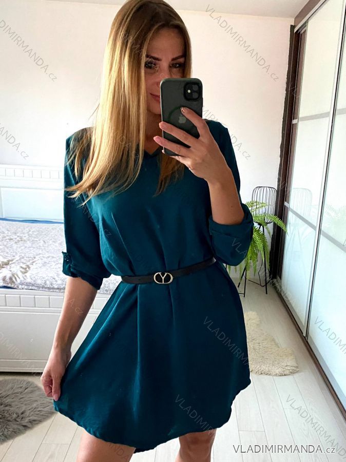 Tunika košilová prodloužená dámské 3/4 rukáv s páskem (M/L/XL ONE SIZE) ITALSKÁ MÓDA IMM23UN7018/DU M / L biela
