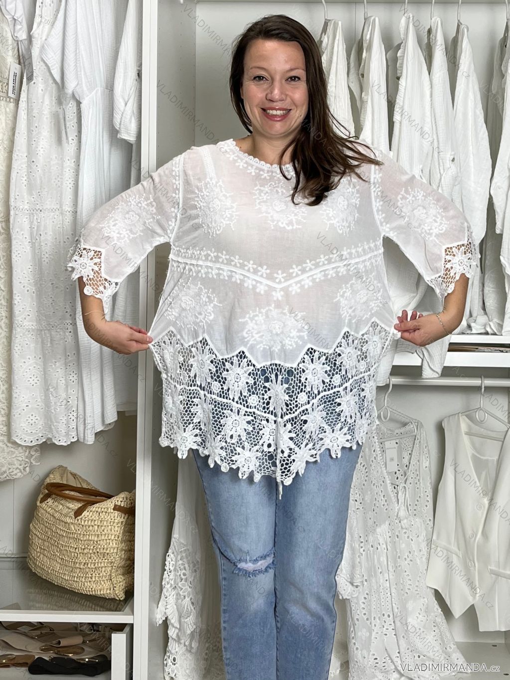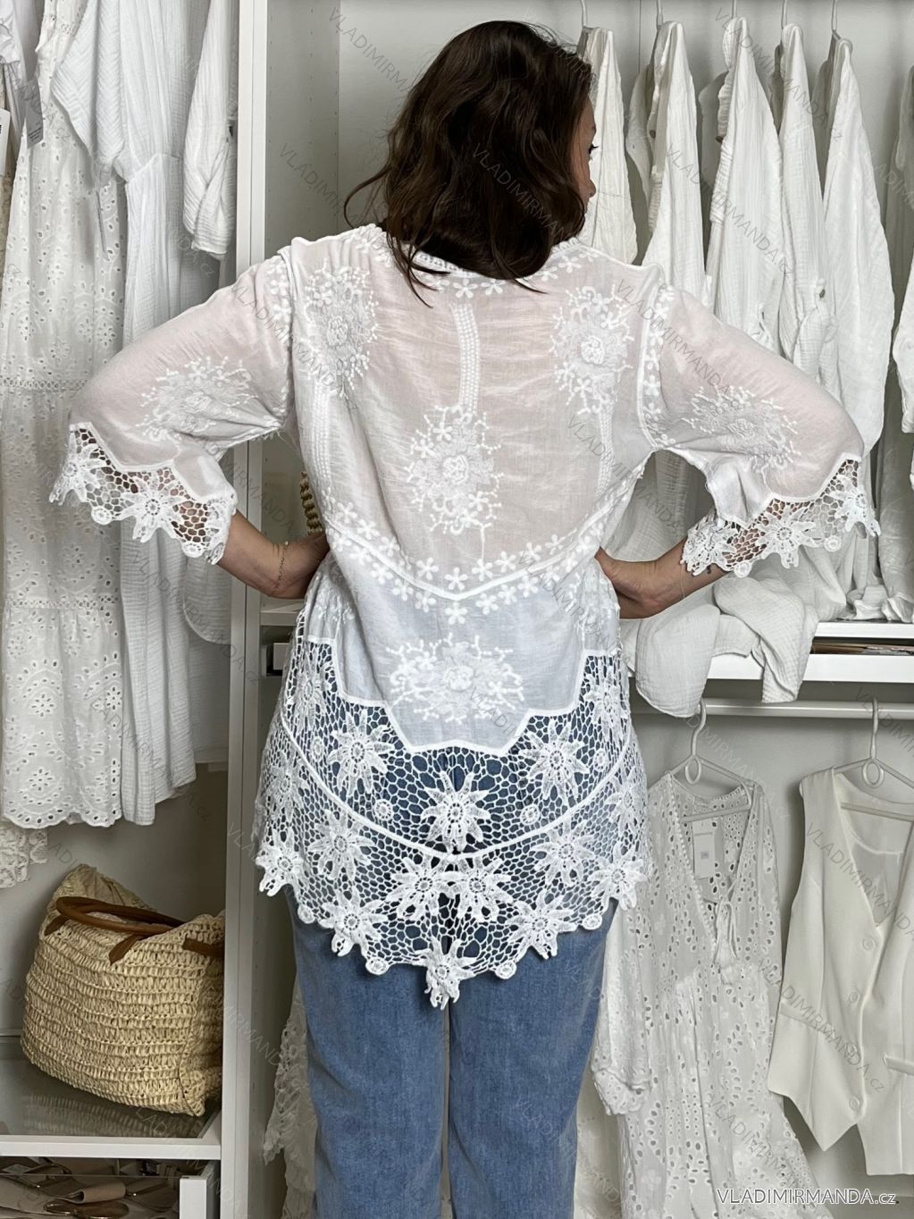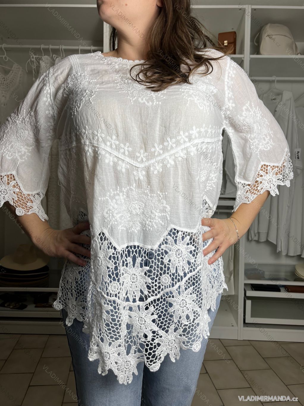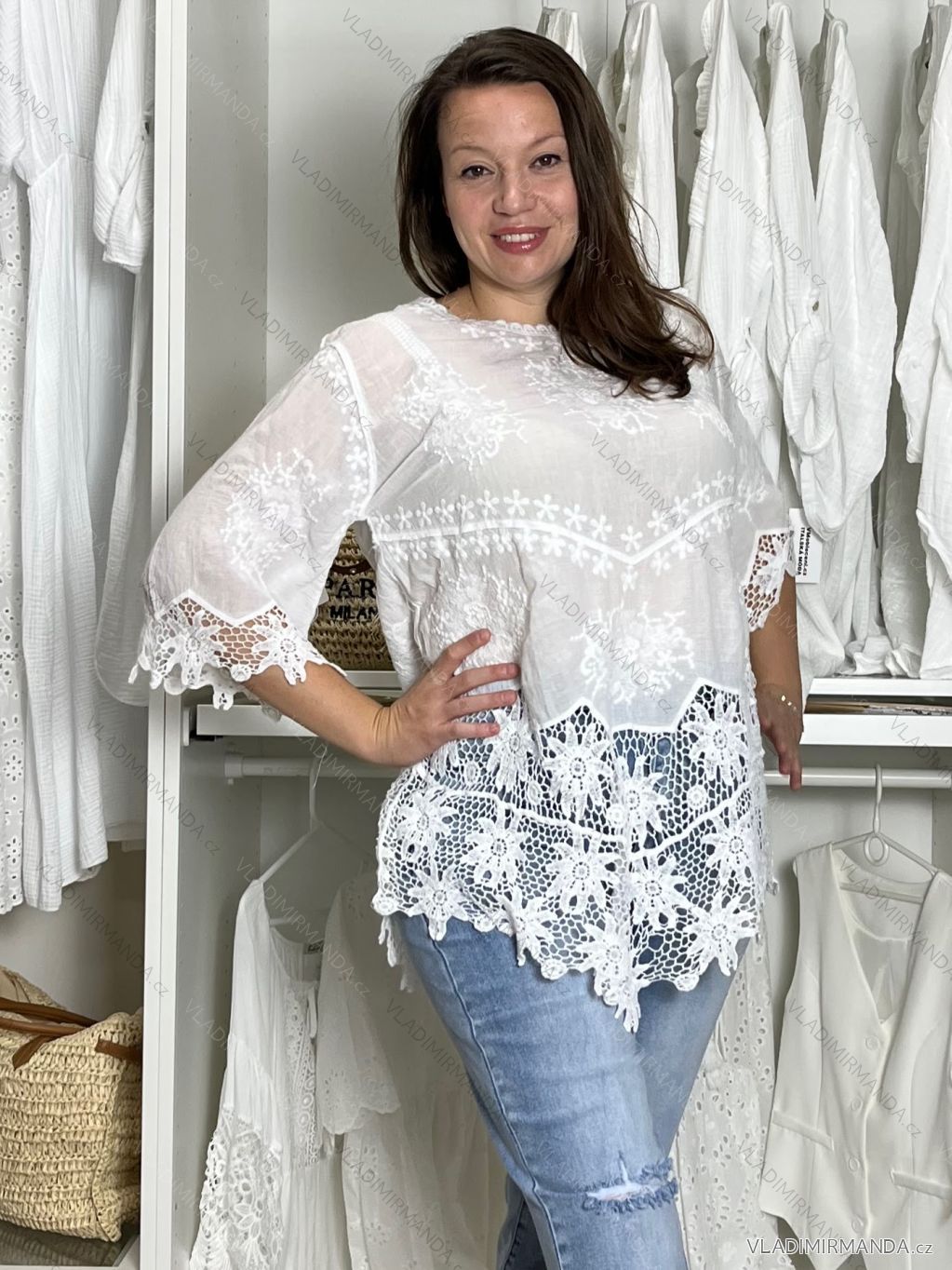 TOVAR (119419) > oblečenie dámske (80848) > Topy, tričká, tuniky a tielka (12897) > Tunika krajkové letné plážové cez plavky 3/4 rukáv dámske SELENA (S/M/L onesize) TALIANSKÁ MÓDA IMB24112/DU S/M/L biela