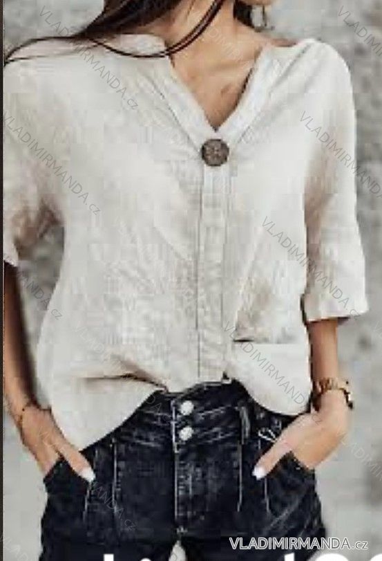 TOVAR (120014) > oblečenie dámske (81285) > Topy, tričká, tuniky a tielka (12910) > Tunika oversize krátky rukáv ľanová dámska (S/M/L ONE SIZE) TALIANSKA MÓDA IMWAD24179