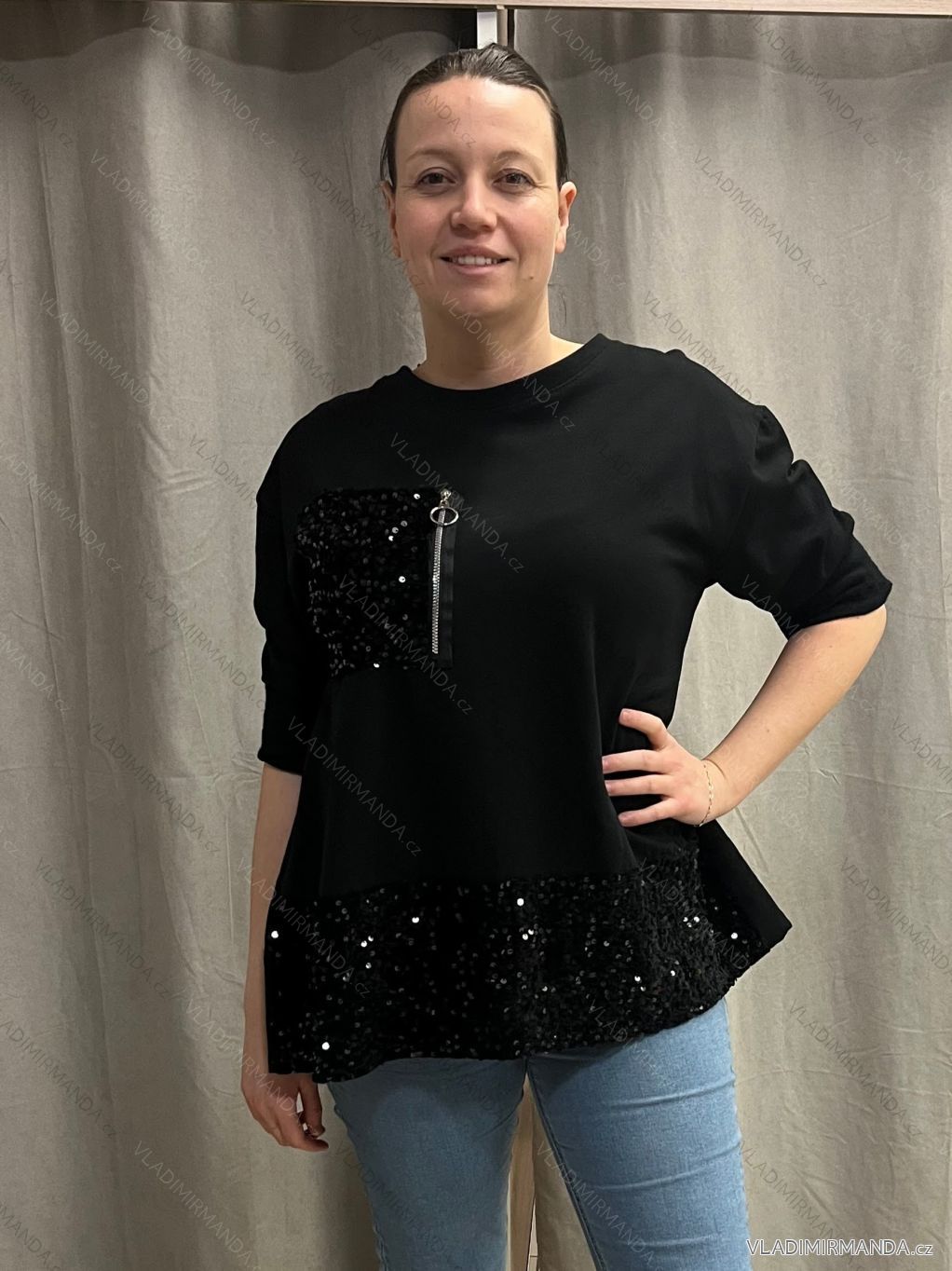 TOVAR (119632) > oblečenie dámske (81072) > Topy, tričká, tuniky a tielka (12969) > Tunika s flitry teplá dlouhý rukáv dámská (42/44/46 ONE SIZE) ITALSKÁ MÓDA IMWMY2439317 čierna