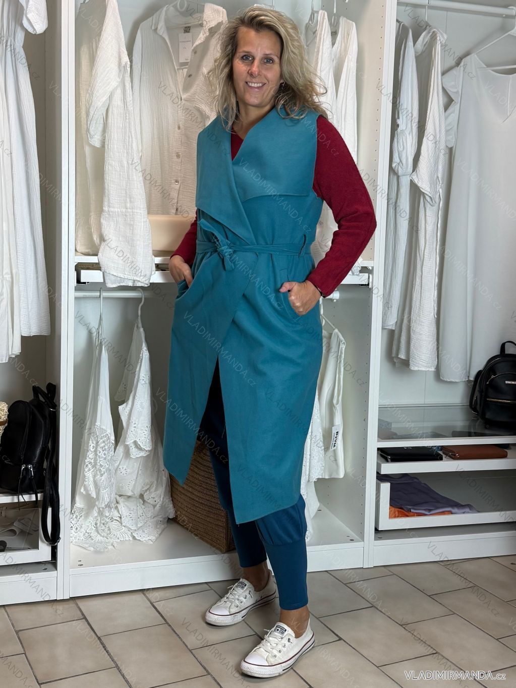 TOVAR (120811) > oblečenie dámske (81893) > Bundy, kabáty, vesty a saka (8840) > Vesta flauš bez rukávov dámska (M/L ONE SIZE) TALIANSKA MÓDA IMD22900/DR petrolejová M/L