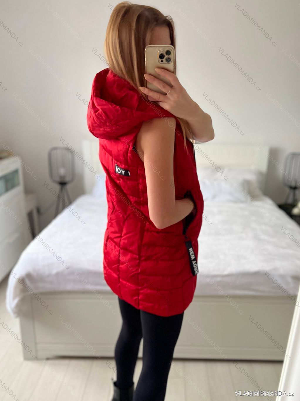 TOVAR (121230) > oblečenie dámske (82015) > Bundy, kabáty, vesty a saka (8794) > Vesta jarná tenká s kapucňou dámska (S-2XL) TALIANSKA MÓDA PMWB23B218135-C/DUR - červená - S