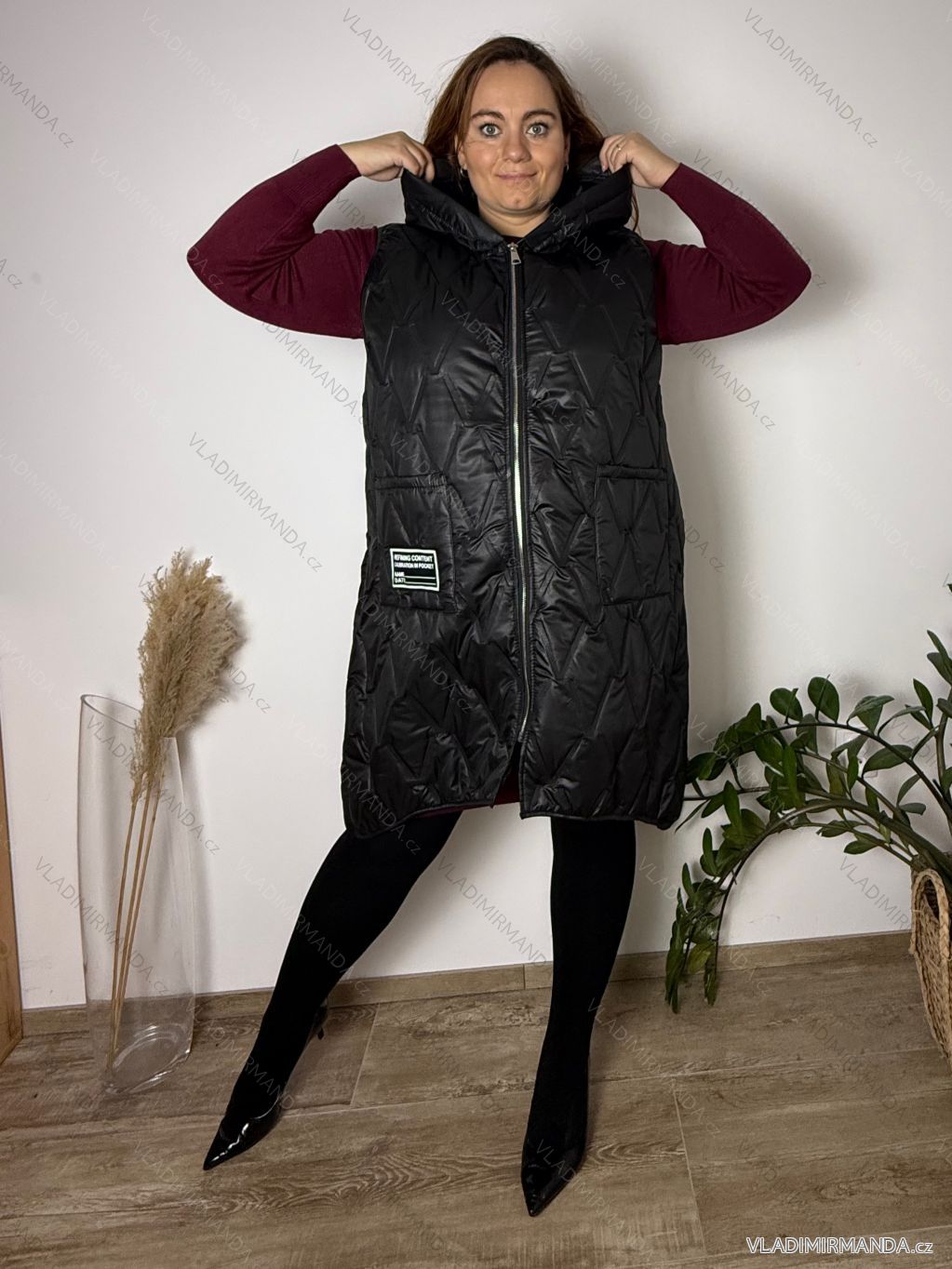 TOVAR (120861) > oblečenie dámske (81928) > Bundy, kabáty, vesty a saka (8841) > Vesta s kapucňou bez rukávu dámske nadrozmer (52/54/56 ONE SIZE) TALIANSKA MóDA IM4251256