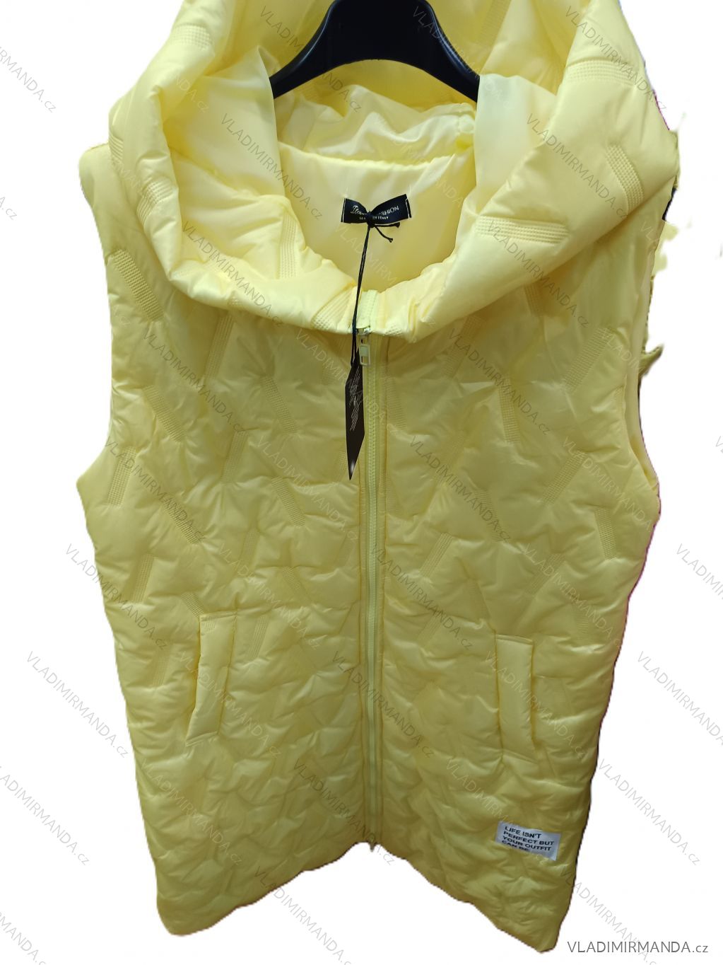 TOVAR (120887) > oblečenie dámske (81951) > Bundy, kabáty, vesty a saka (8843) > Vesty dámske (816) > Vesty šušťákové (506) > Vesta slabá s kapucňou bez rukávu dámska (S/M/L ONE SIZE) TALIANSKA MÓDA IMSM26040